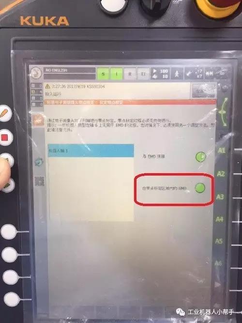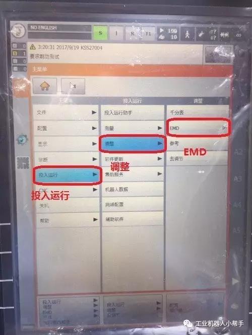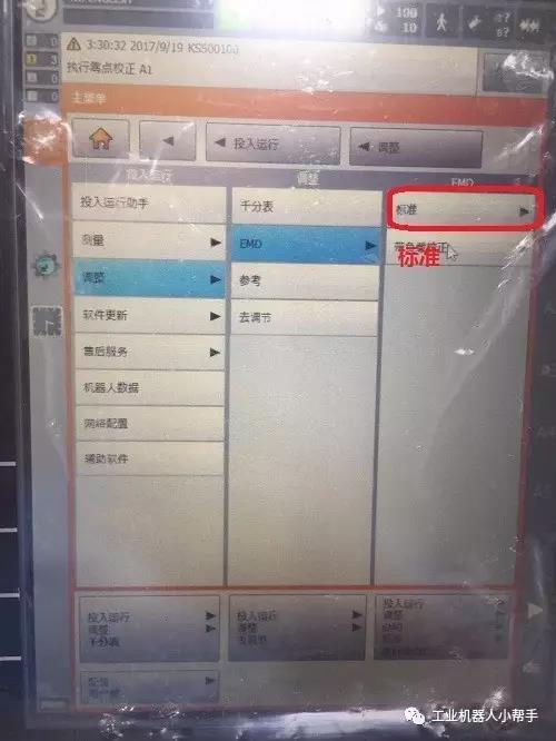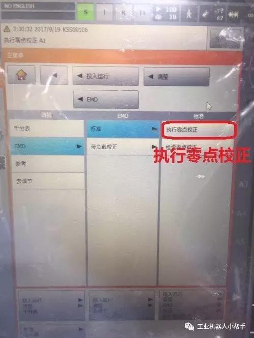 step 4:點(diǎn)擊示教器主菜單鍵,選擇投入運(yùn)行-調(diào)整-EMD-標(biāo)準(zhǔn)-執(zhí)行零點(diǎn)標(biāo)定;